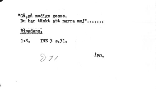 //// *Ga,ga modige gosse. //// Du har tänkt att narra mej"....... //// i //// Ringdans. //// 1:8. INE 3 s.3l. //// I //// ^ / / //// t ////