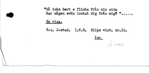 //// "Gå icke bert o flicka fi*ån min sida //// ^^ Har någon ovän lockat dig från mig? *...... //// En visa. //// ! //// 8:A. J-stad. I.N.E. Slips visb. nr.34. //// ÅBO. //// t ////