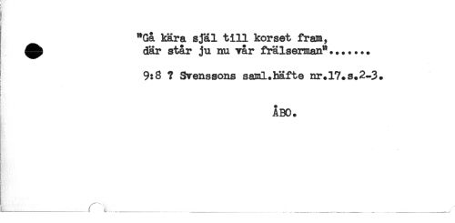 //// "Gå kara sjal till korset fram, //// ^^ där står ju nu vår frälserinan"....... //// 9:8 ? Svenssons saml.häfte nr+17+s.2-3. //// t //// } //// ÅBO. //// i______ f L___ ____ .... ______._____ ._. .... ////