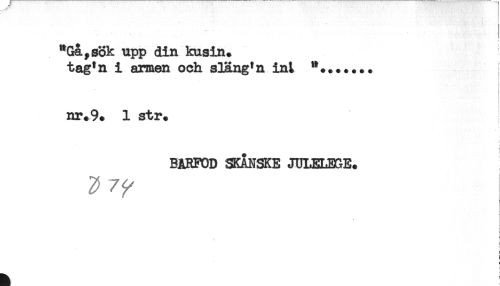 //// "Gå, sok upp din kusin. //// tag'n i armen och s3Rng*n int //// ! //// nr* 9. 1 str. //// t //// BARFOD SKÅNSKE JULELESE. //// * //// r //// < ////
