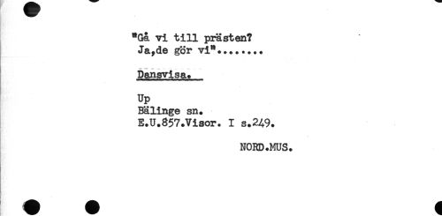 //// "Gå vi till prästen? //// Ja,de gör vi"........ //// Dansvisa. //// * //// Up //// Bälinge sn. //// E.U.857.Visor. I s.2^9. //// NORD.MUS. ////