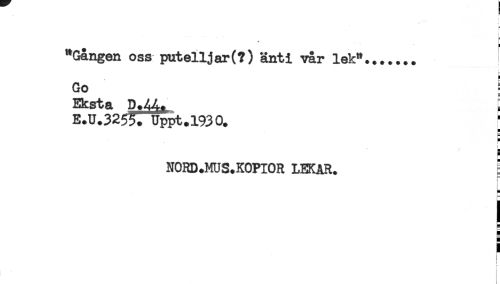 //// ) //// "Gången oss putelljar(?) änti vår lek"....... //// Go i //// Eksta D.44. ! //// E.u.325^7uppt.l930. //// P //// C //// < //// ! //// a //// g //// NORD.MUS.KOPIOR LEKAR. } //// E //// ! //// s //// H //// i //// ! //// { ////