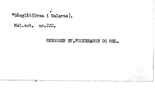 //// , ^ //// "Gånglåt(Orsa i Dalarne). //// t //// - //// Mel.not* nr.222. //// i //// BERGGREN SV.FOLKESANGE OG MEL. ////