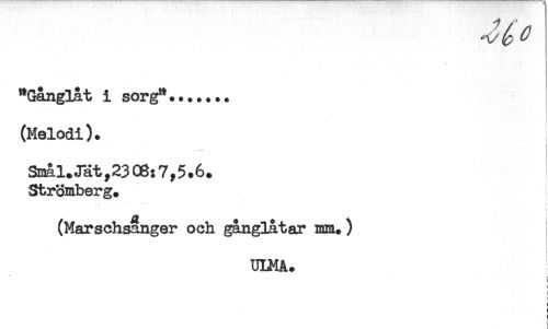 //// "Gånglåt i sorg"....... //// (Melodi). //// Smål.Jät,23 06:7,5.6. //// Strömberg. //// * : //// (Marschsånger och gånglåtar mm.) //// ULMA. //// c //// f ////