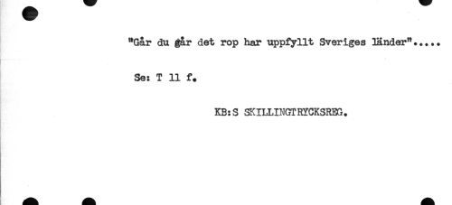//// "Går du gar det rop har uppfyllt Sveriges länder"... //// Se: T 11 f. //// KB:S SKILLINGTRYCKSREG. ////