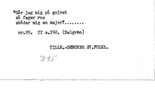 //// "Går j ag mig på golvet //// så fager ros //// skådar mig en major?........ //// nr*95. II s+392. (Dalgrén) //// i //// ^ //// i //// . //// TILLH.-DENCKER SV.FOLKL. //// i //// } //// t //// ! //// : ////