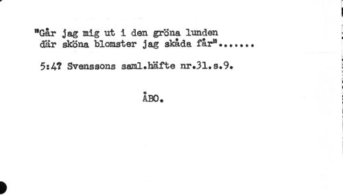 //// "Går jag mig ut i den gröna lunden ; //// dar sköna blomster jag skåda får"....... //// t //// 5:A? Svenssons saml.häfte nr.31.s.9. //// r //// ÅBO. I //// i //// ! //// t //// i //// t ////