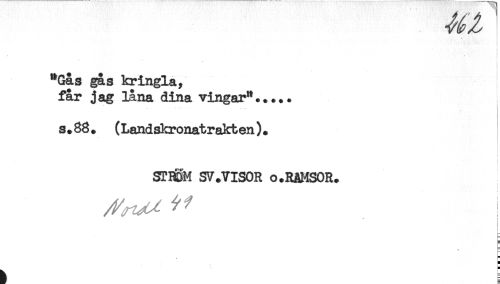 //// 1M //// - . . //// "Gås gås kringla, //// får jag låna dina vingar"..... //// s . 88. (Landskronat r akt en). //// STRÖM SV .VISOR o.RAMSOR. //// * t //// < //// . ** //// H //// H ////