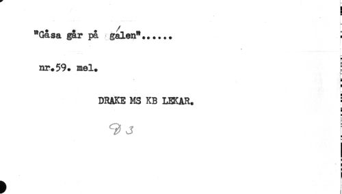 //// "Gåsa går på galen"........ //// t- //// E //// nr. 59. mel. g //// ! //// g //// DRAKE MS KB LEKAR. ! //// & //// a //// [ //// ^ j //// ; ////