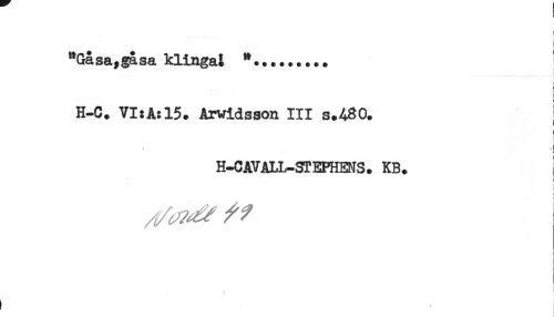 //// f //// t //// "Gåsa^gasa klingat "......... //// ' //// H-C. VI:A:15. Arvidsson III s.4%0. ^ //// ! //// i //// i //// H-CAVALL-STEPHEMS. KB. //// ! //// j //// ! //// ft //// s i //// ! - ! ////