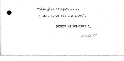//// ] //// - -* //// "Gase gåse Klinga"....... //// ^ 1 str. s.121 (Vs 2:2 s.270). //// DYBECK MS FOLKLORE 1. //// ! ////