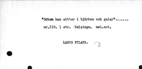//// "Gokem han sitter i björken och galar".,*.... //// nr.319+ 1 str. Helsinge. nel.not. //// LAGUS NYLAND. ////