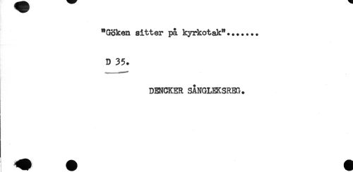 //// "Göken sitter på kyrkotak"....... //// D 35. //// DENCKER SÅNGLEKSRB5. ////