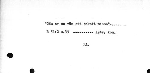 //// < //// i //// "Gon av en vän ett enkelt minne**....... //// B 51:2 s.39 ----- Istr* kom* //// t'!; ' //// t //// t //// RA. //// < //// ! //// i ////
