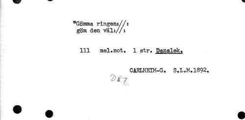 //// "Gömma ringen://: //// gom den väl://: //// 111 mel.not. 1 str. Danslek. //// * //// CARLHEIM-G. S.L.M.1892. ////
