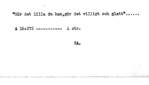//// "Gör det lilla du kan,gör det villigt och glatt"...... //// A 16:272 —......— A str. //// RA. ////