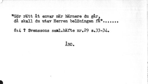 //// "Gör rätt åt envar när härnere du går^ //// då skall du utav Herren belöningen fä*....... //// 8:4 ? Svenssons saml.häfte nr.29 S.33-3A. //// ÅBO. //// i //// i //// < //// i //// i //// - //// ? //// ! //// t //// i- //// E ////