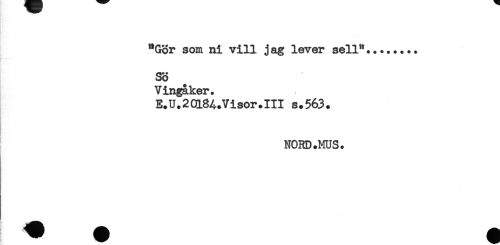 //// "Gör som ni vill jag lever sell"........ //// SÖ //// V 111^3. l^or * //// E.U.2Ql8A.Visor.III s.563. //// NORD.MUS. ////