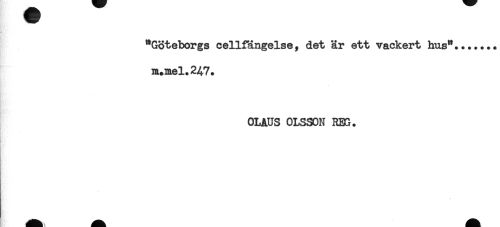 //// "Göteborgs cellfängelse, det är ett vackert hus"... //// m.mel.24,7. //// OLAUS OLSSON REG. ////