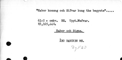 //// "Habor konung och Sifvar kung the begynte"..... //// 6l?2 ^ oiakv. RE. Uppt.Wefvar. //// R3,165,440. //// * //// Habor och Signe. //// ^ ÅBO RANCKEN MS. ////