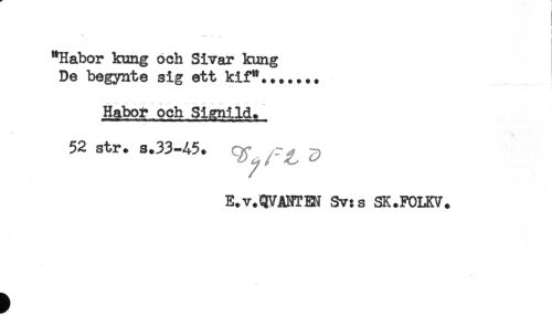 //// ! //// i //// < //// "Habor kung och Sivar kung //// De begynte sig ett kif*....... //// Habor och Signild. //// 52 str. s.33-45. //// E.v.QVANTBN Sv:s SK.FOLKV. ////