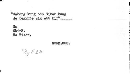 //// "Haborg kung och Siver kung //// de begynte sig ett kif*...... //// t= //// Sm ^ //// Skirö. { //// Ha Visor. - //// i— //// E //// NORD.MUS. ! //// g //// g //// i //// i //// ^ ! ////