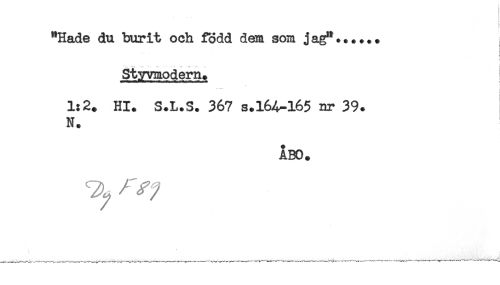 //// "Hade du burit och född dem som jag"...*.. //// t //// Styvmodern. //// 1:2. Hl. S.L.S. 367 s.164-165 or 39. //// N. //// ÅBO. ////