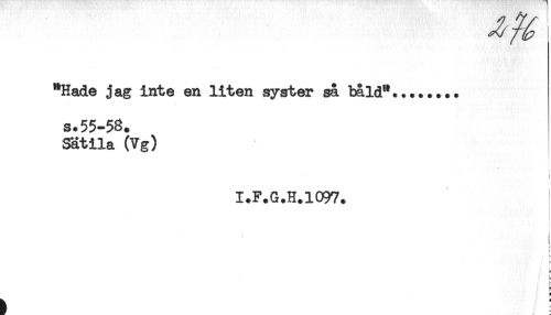 //// "Hade jag inte en liten syster så tåld"........ //// s.55-58. //// Sätila (Vg) //// I.F.G.H.1097. //// i //// t //// < //// t ////