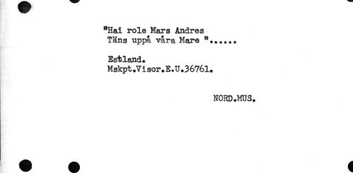 //// "Hal role Mars Andres //// Tans nppå våra Mare ".....* //// Estland. //// Mskpt.Visor.E.U.3676l. //// NORD.MUS. ////
