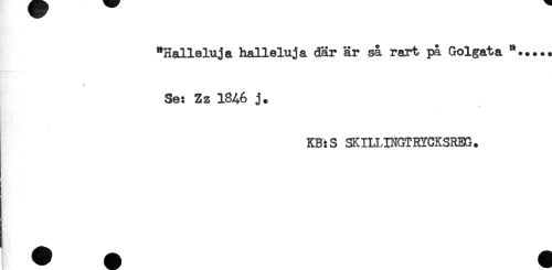 //// "Halleluja halleluja där är så rart på Golgata *..... //// t //// Se: Zz 1%6 j. //// KB:S SKILLINGTRYCKSREG. //// # * a ////