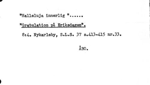 //// "Halleluja innerlig "...... //// 8:A. Nykarleby, S.L.S. 37 S.413-A15 nr.33. //// ÅBO. //// t ////