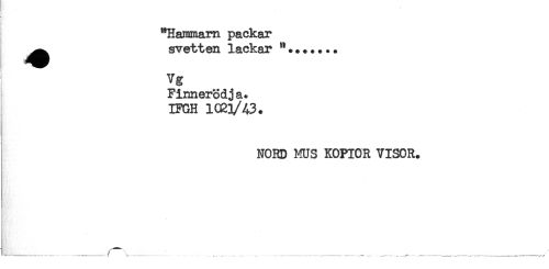 //// ] //// "Hammarn packar //// ^^ svetten lackar ...... //// Vg //// Finnerodja. //// IFGH lCRl/43. //// NORD MUS KOPIOR VISOR. ////
