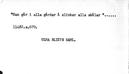 //// "Han går i alla gårdar å slickar alla skålar //// t //// 1HS2.S.679. //// i //// < //// ULMA BLIXTS SAML. //// t //// < //// < //// t //// r //// i //// L ////