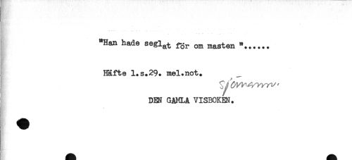 //// "Han hade segl^ fgr om masten "...... //// Häfte l.s.29. mel.not. //// DEN GAMLA VISBOKEN. //// B* (H^ ////