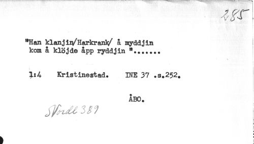 //// "Han klanjii/HarkranV å ^ddjin i //// kom å klöjde åpp ryddjin //// v i //// t //// . . . ^ //// Kristinestad. INE 37 .s.252. //// } //// ÅBO. //// a ////