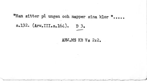 //// "Han sitter på ungen och napper sina klor *... + . //// s.132. (Arw.III.s.164). D 3. //// . //// AW.MS KB Vs 2:2. ////