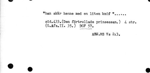 //// "han skär henne med en liten knif *...... //// sid.433.(Den förtrollade prinsessan.) 4 str. //// (G.Afz.II. 35.) DGF57. //// AHM.MS Vs 2:3. ////