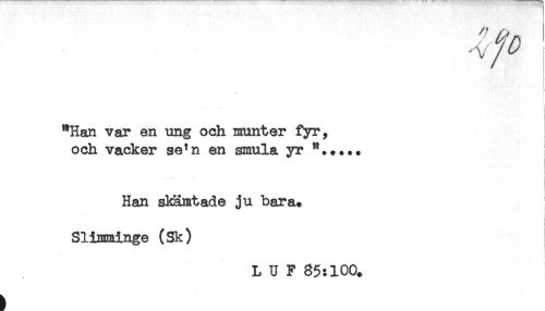 //// ! //// ) //// ) //// I //// "Han var en ung och munter fyr, //// t //// och vacker se*n en smula yr ".+... //// Han slsamtade ju bara. //// - //// Slimminge (Sk) //// L U F 85:100. ////