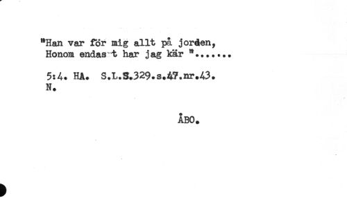 //// "Han var för mig allt pa jorden, //// Honom endas t har jag kär //// 5:4. HA. S.L.3.329.s.47.nr.43. //// N. //// ÅBO. ////