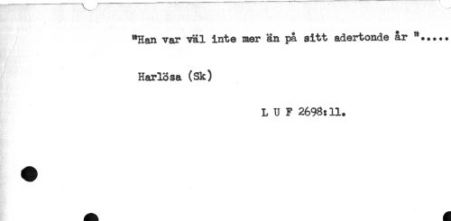 //// "Han var väl inte mer än pa sitt adertonde år "..... //// Harlösa (Sk) //// L U F 2698:11. ////