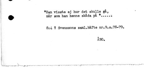 //// "Han visste ej hur det skulle ga, //// ^^ nar som han henne skada pa *..... ^ //// 8:4 ? Svenssons saml.häfte nr.9.s.78-79. //// ÅBO. //// 4 ////