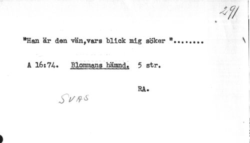 //// "Han är den vän,vars blick mig söker *........ \ //// A 16:74* Blommans hämnd* 5 str. //// RA* //// ^ //// t //// : //// * ^ //// i ////