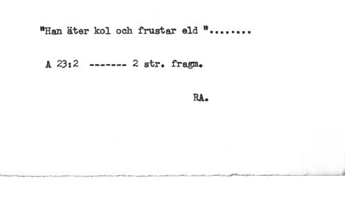 //// "Han äter kol och frustar eld "........ //// A 23:2 -------2 str. fragm. //// RA. ////