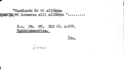 //// "Handlande är vi allihopa //// ^SBOg^-ti kommersa alli allihopa "......... //// 5 //// 8:4. OR. MU. SLS 22. s.605. ^ //// Handelsmansvisa. //// ÅBo. ////