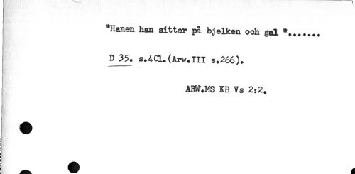 //// "Hanen han sitter pa bjelken och gal //// [ //// D 35. s.4d.(Arw.lii s.266). //// AW.M3 KB Vs 2:2. ////