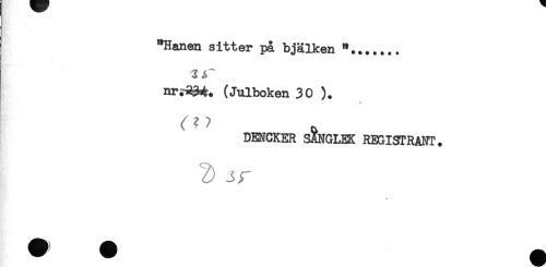 //// "Hanen sitter pa bjälken "....... //// nr(Julboken 30 ). //// DENCKER SÅNGLEK REGISTRANT. ////