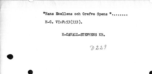 //// "Hans Exellens och Grefve Spens *........ //// H-C. VI:F:53(333). //// H-C AV ALL-ST EPHENS KB. ////