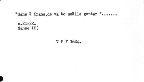 //// "Hans å Krans,de va to snälle guttar "....... //// i //// s+21-22. //// Sanne (B) //// V F F 1624. ////