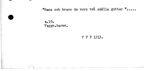 //// "Hans och krans de voro två snälla guttar *+.... //// s.19. //// Vaggv.barnv. //// V F F 1313. //// ! //// r \ _ _ ___ ______/ //// L ____ — ^ ^......— -------.............. ////
