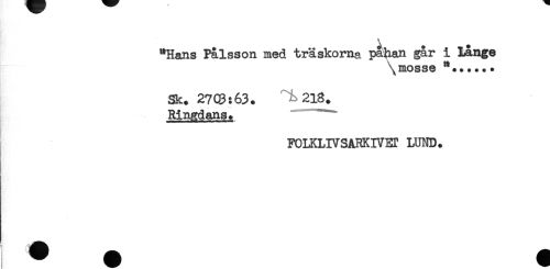 //// "Hans Palsson med träskorna pahan gar i Lange //// \mosse //// Sk. 2703:63. ^218. //// .. //// Ringdans. //// FOLKLIVSARKIVET LUMD. ////